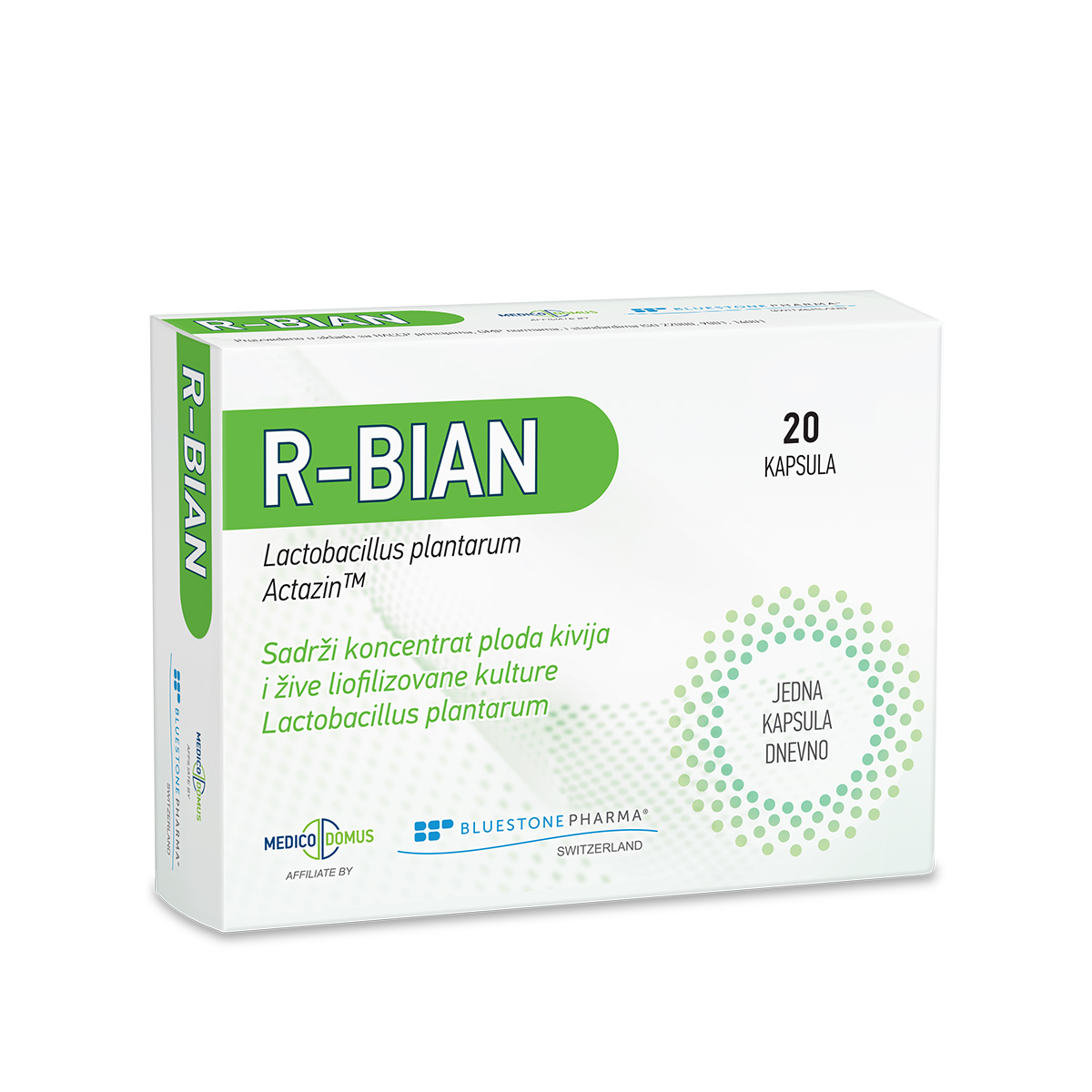 R-BIAN je preparat koji doprinosi održavanju crevne flore i normalnih funkcija digestivnog trakta. Sadrži 20 milijardi probiotskih kultura Lactobacillus plantarum i Actazin®.